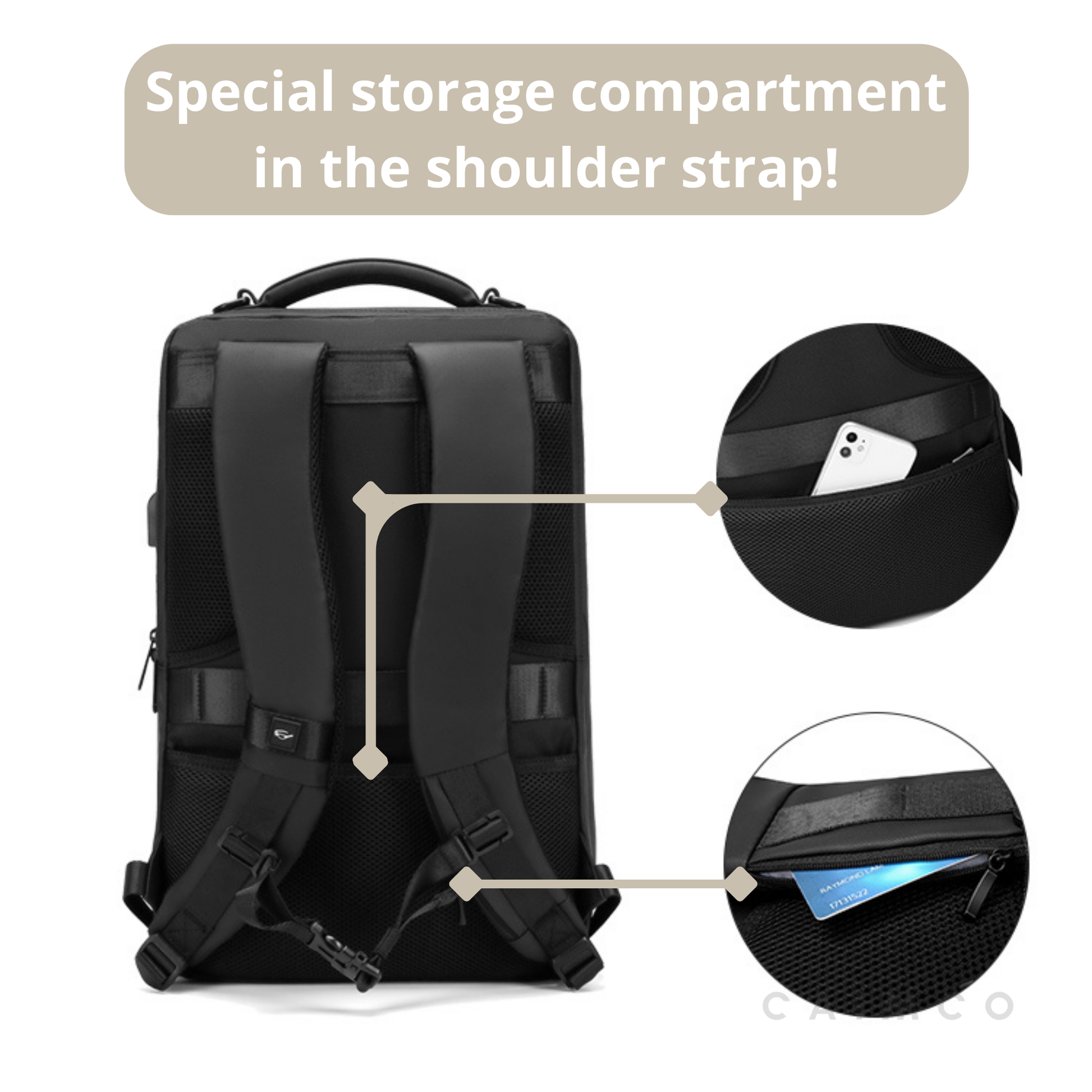 De Caimco rugzakken bieden ook meerdere compartimenten voor een zorgvuldige organisatie. Met deze speciale vakken en compartimenten kunt u uw spullen scheiden, zodat u ze gemakkelijk kunt vinden en uw spullen tijdens de hele reis netjes kunt houden.